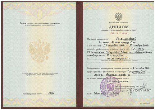 • 2015 – Волгоградский государственный медицинский институт («Психотерапия»);
